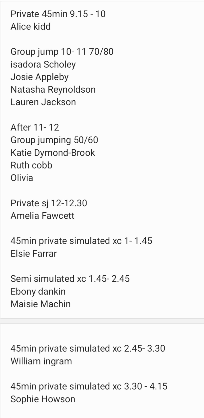 Please state your level, height you are jumping and height of your horse.if you have a time preference please state, where possible it will be accommodated