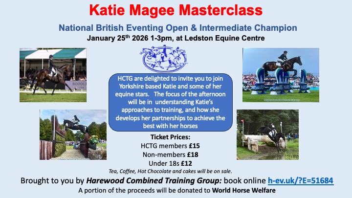 HCTG are delighted to invite you to join Yorkshire based Katie and some of her equine stars. The focus of the afternoon will be in understanding Katie’s approaches to training, and how she develops her partnerships to achieve the best with her horses.